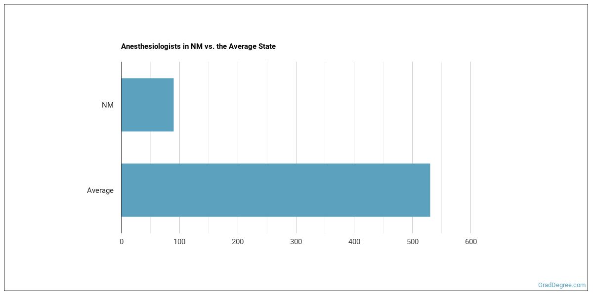 The typical state has 530 Anesthesiologists working in it, which means New Mexico has fewer Anesthesiologists than average.