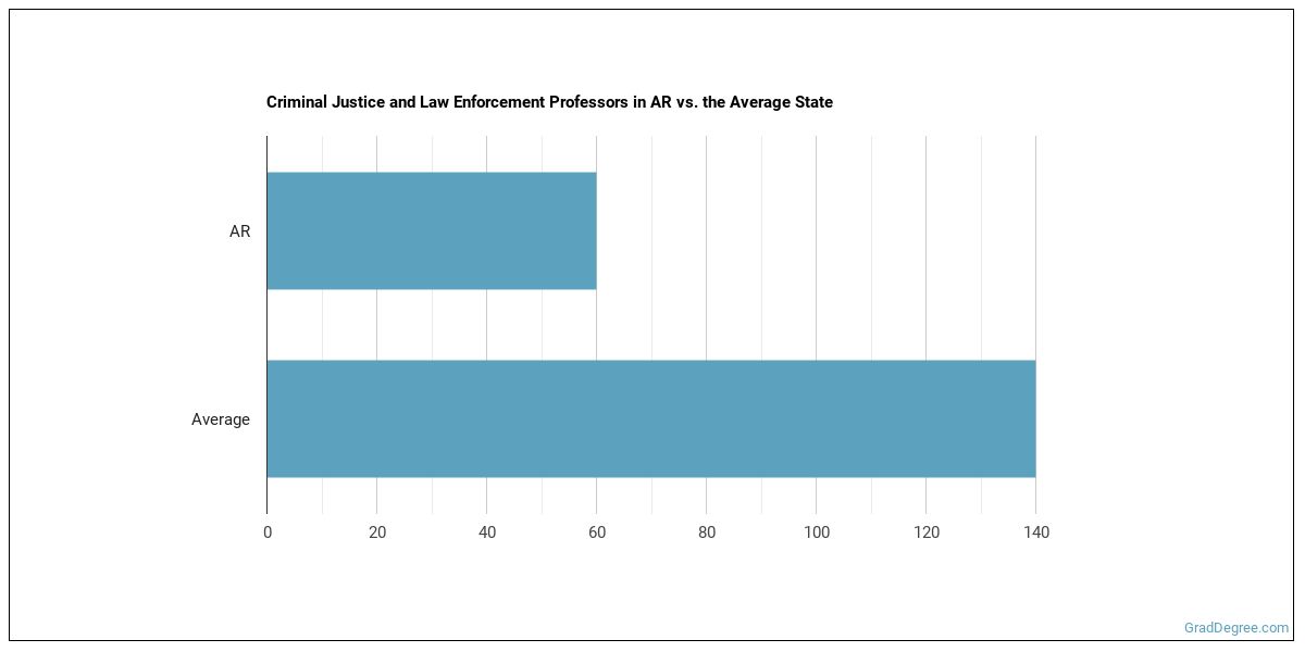The typical state has 140 Criminal Justice and Law Enforcement Professors working in it, which means Arkansas has fewer Criminal Justice and Law Enforcement Professors than average.