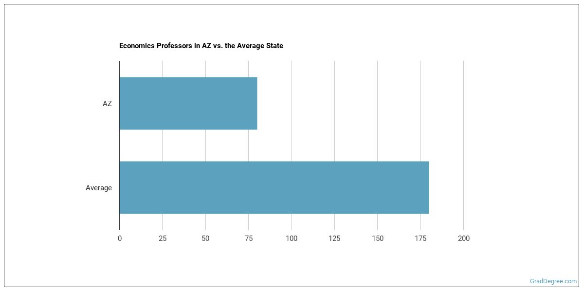 The typical state has 180 Economics Professors working in it, which means Arizona has fewer Economics Professors than average.