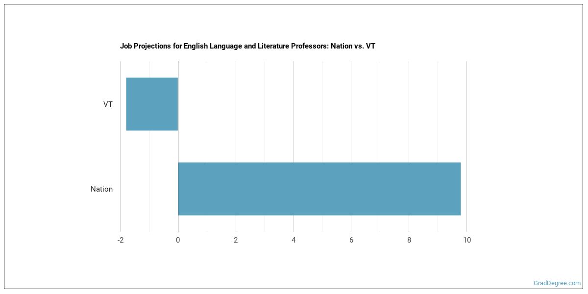 - Employment for English Language and Literature Professors in Vermont is expected to decrease.