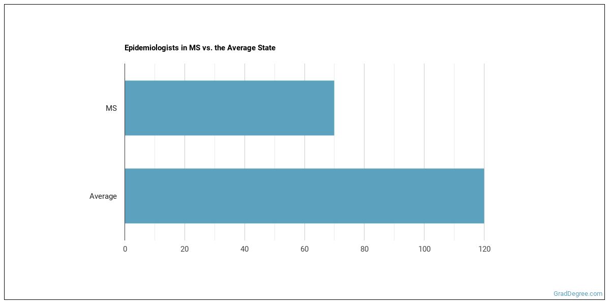 The typical state has 120 Epidemiologists working in it, which means Mississippi has fewer Epidemiologists than average.
