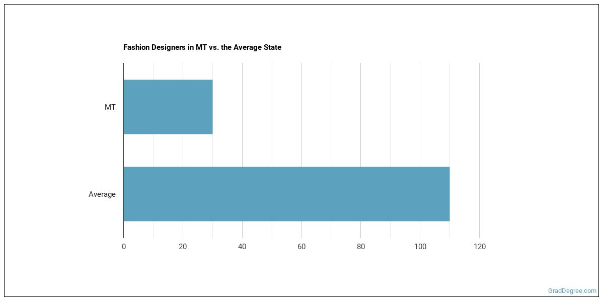 The typical state has 110 Fashion Designers working in it, which means Montana has fewer Fashion Designers than average.