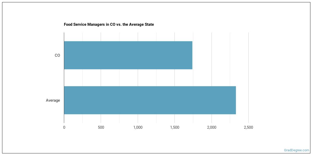 The typical state has 2,330 Food Service Managers working in it, which means Colorado has fewer Food Service Managers than average.