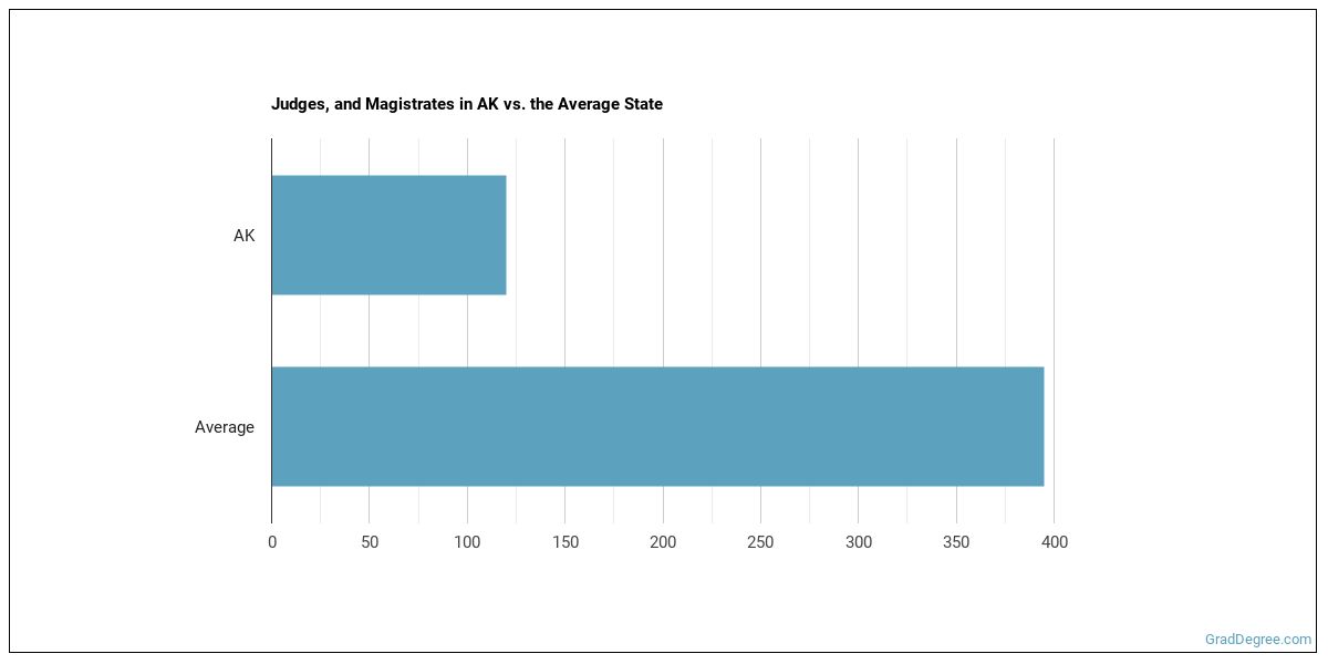 The typical state has 395 Judges, and Magistrates working in it, which means Alaska has fewer Judges, and Magistrates than average.