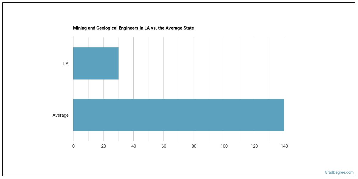 The typical state has 140 Mining and Geological Engineers working in it, which means Louisiana has fewer Mining and Geological Engineers than average.