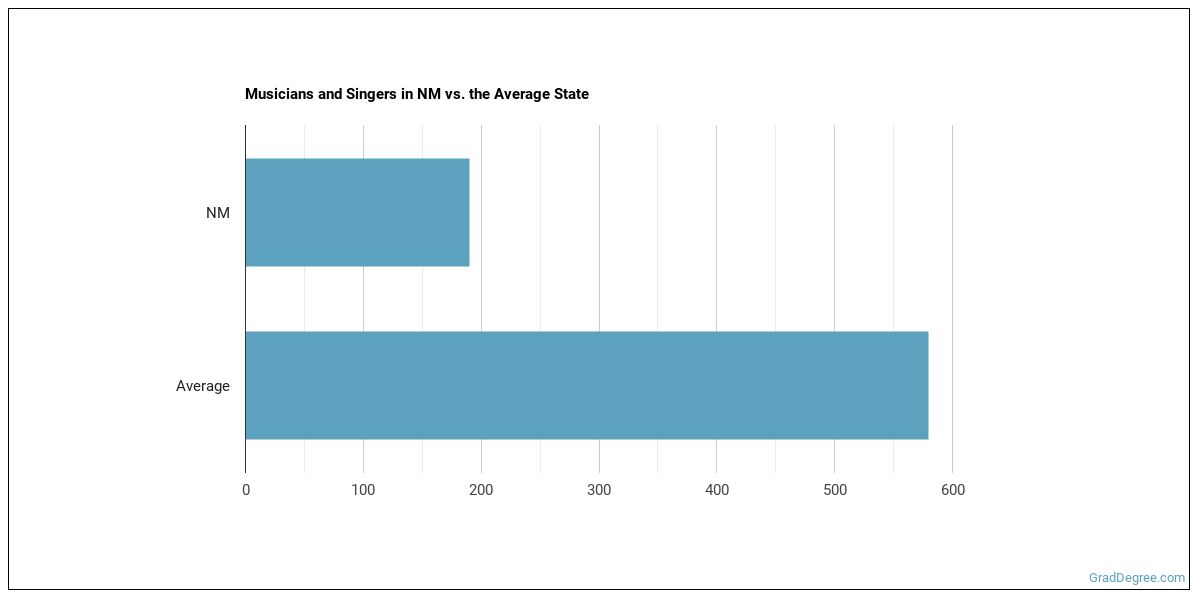 The typical state has 580 Musicians and Singers working in it, which means New Mexico has fewer Musicians and Singers than average.