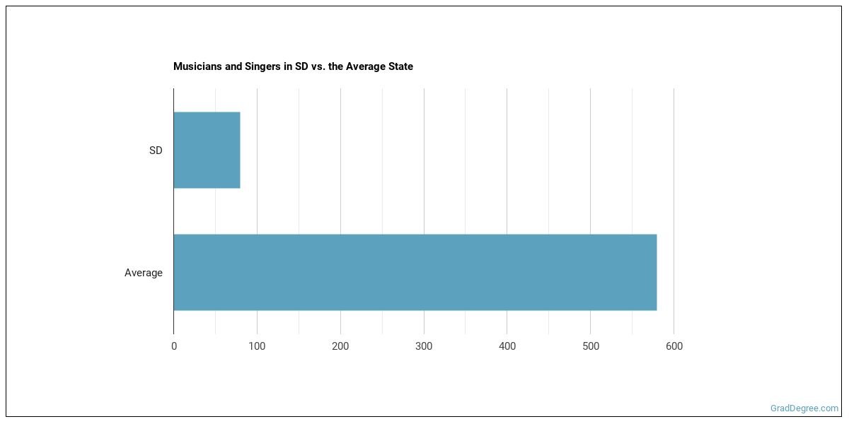 The typical state has 580 Musicians and Singers working in it, which means South Dakota has fewer Musicians and Singers than average.
