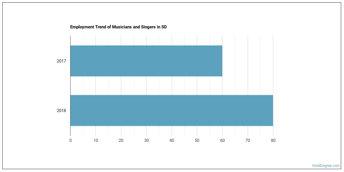 In South Dakota, there were 80 people working as Musicians and Singers in the year 2018.