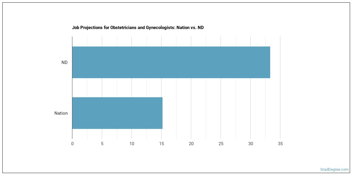 - Projected employment for Obstetricians and Gynecologists in North Dakota is growing faster than average.