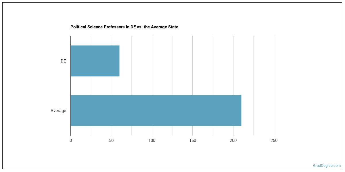 The typical state has 210 Political Science Professors working in it, which means Delaware has fewer Political Science Professors than average.