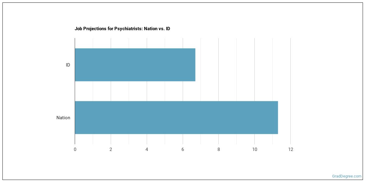 - Projected employment for Psychiatrists in Idaho is growing faster than average.