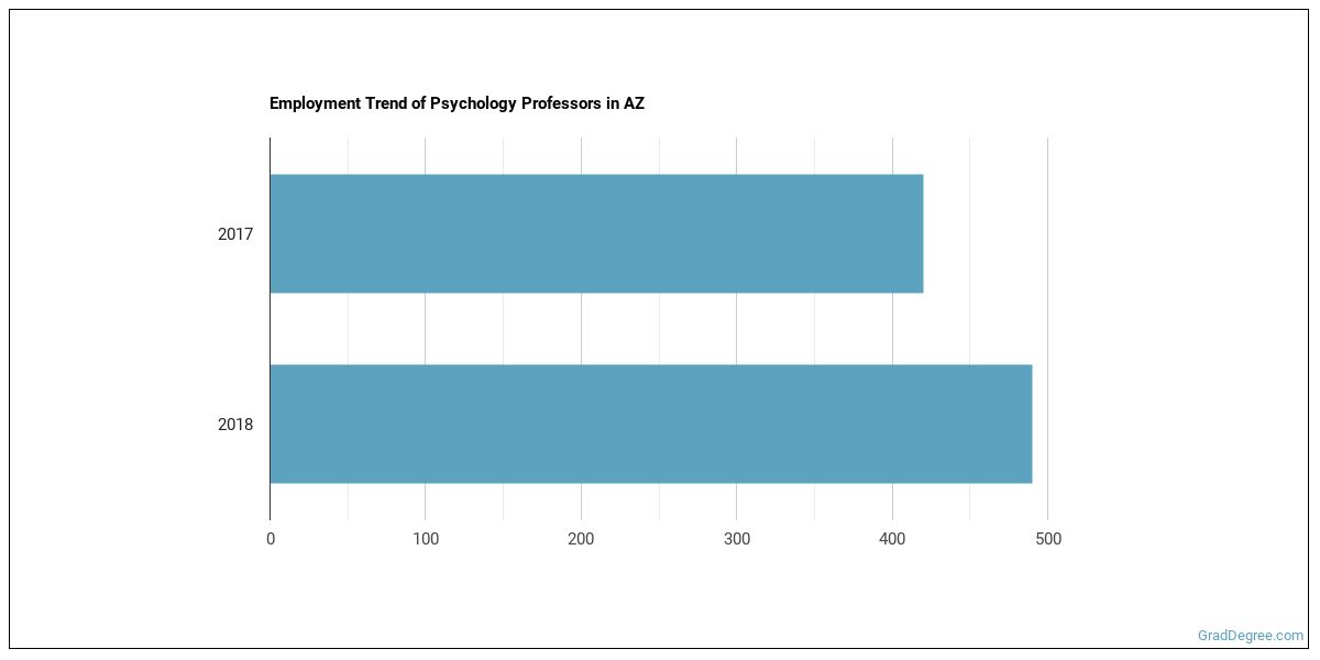 In Arizona, there were 490 people working as Psychology Professors in the year 2018.
