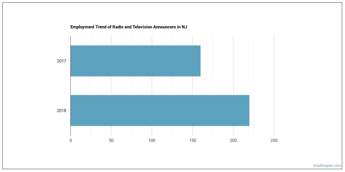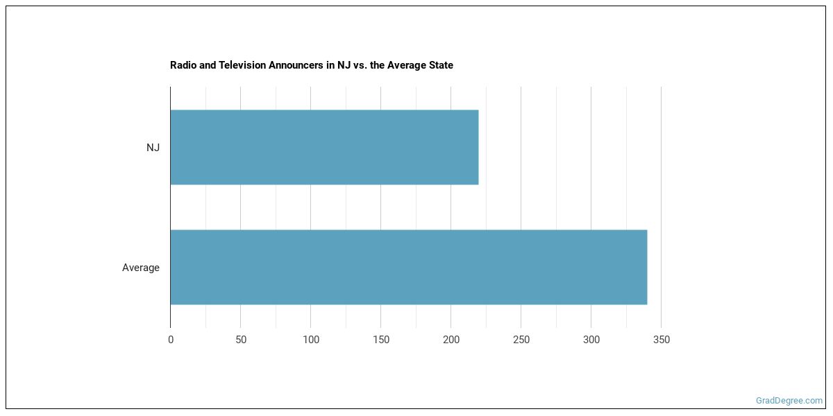 The typical state has 340 Radio and Television Announcers working in it, which means New Jersey has fewer Radio and Television Announcers than average.