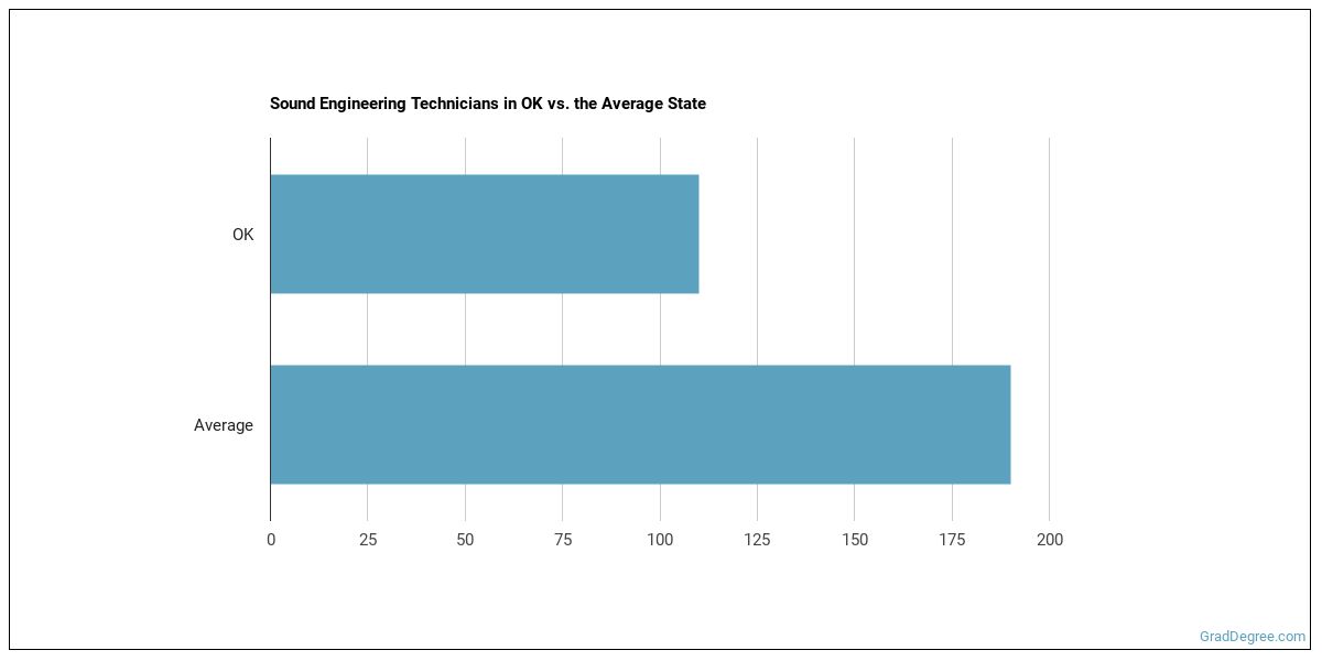 The typical state has 190 Sound Engineering Technicians working in it, which means Oklahoma has fewer Sound Engineering Technicians than average.