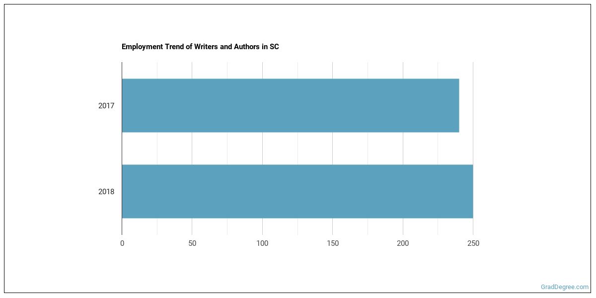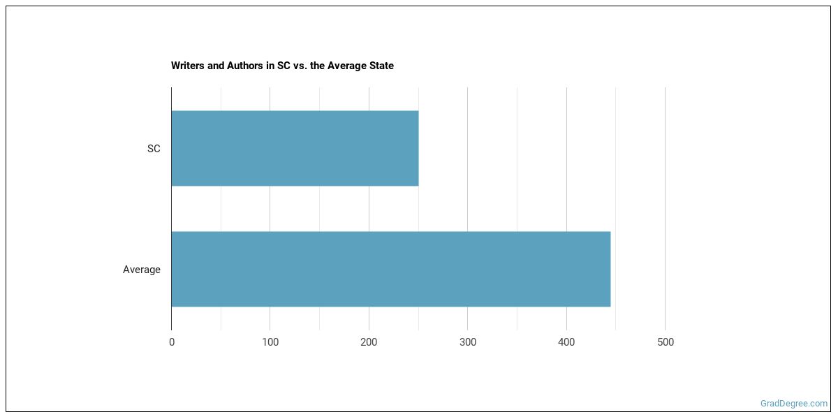 The typical state has 445 Writers and Authors working in it, which means South Carolina has fewer Writers and Authors than average.
