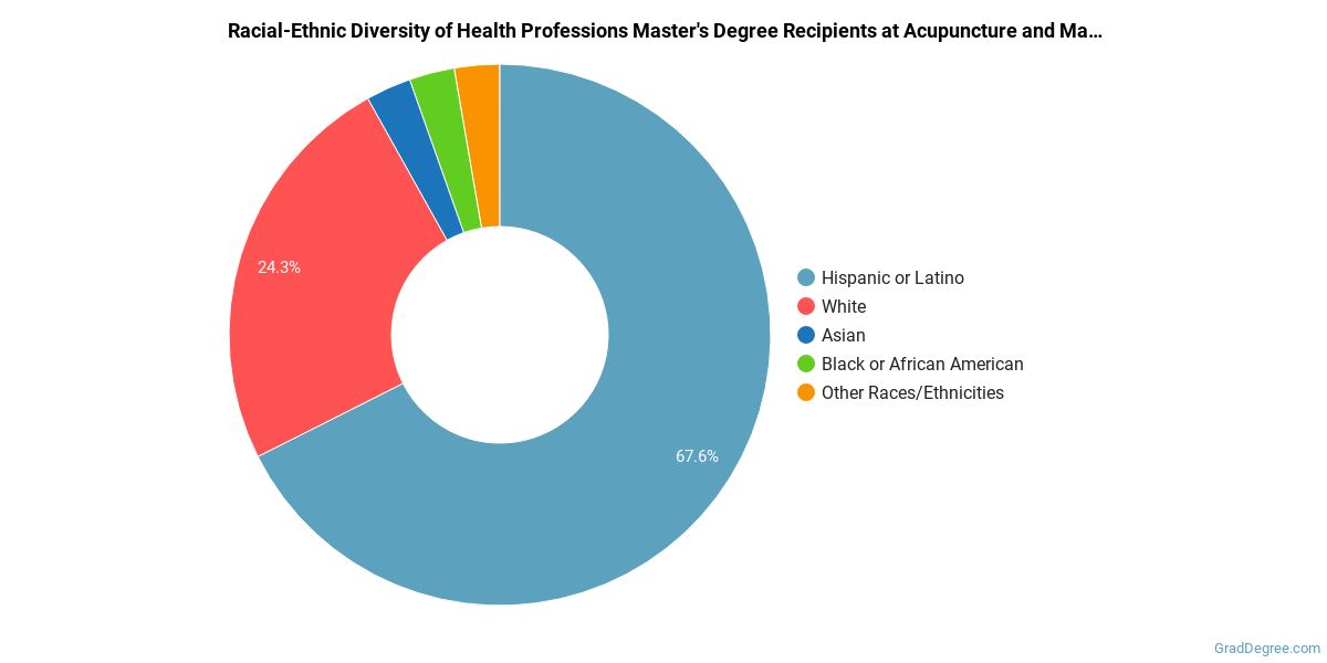 The following table and chart show the race/ethnicity for students who recently graduated from Acupuncture and Massage College with a master's in health professions.
