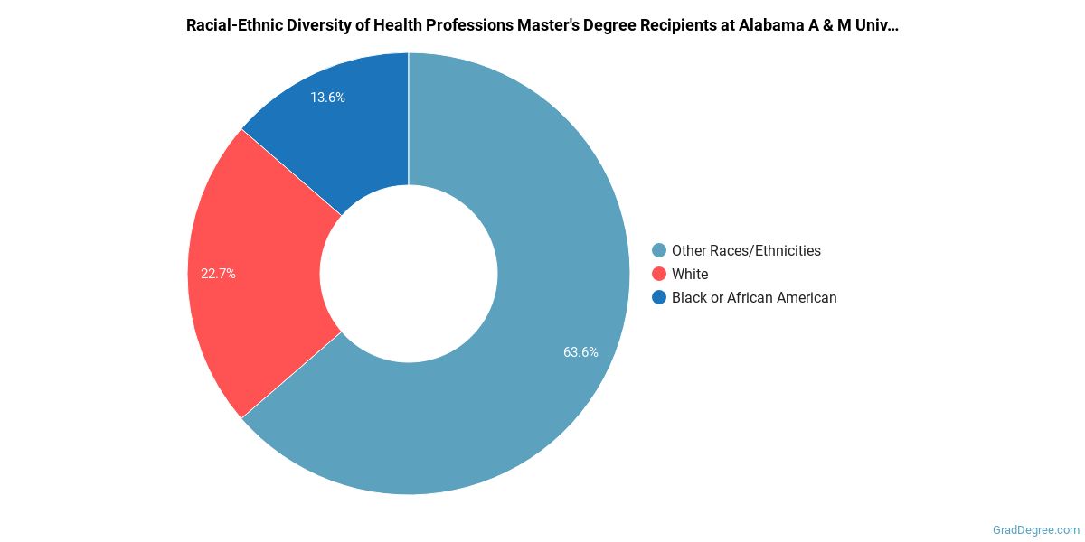 The following table and chart show the race/ethnicity for students who recently graduated from Alabama A & M University with a master's in health professions.