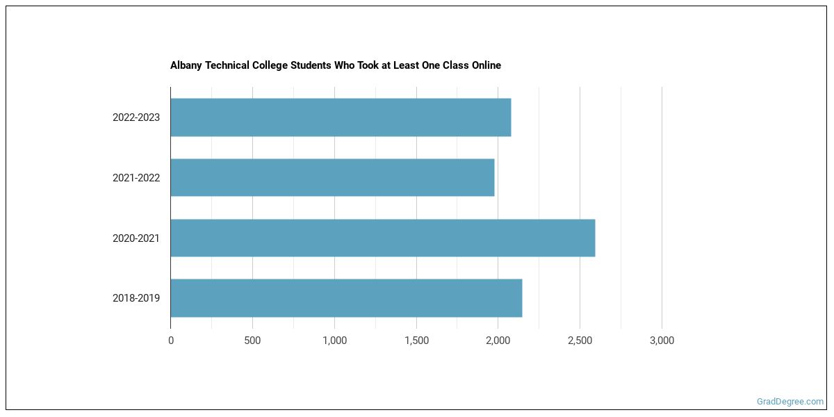 The following chart shows how the online learning population at Albany Technical College has changed over the last few years.