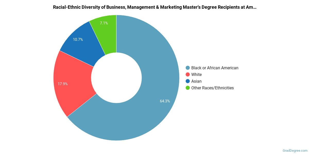 In the business, management and marketing master's program at this school, racial-ethnic minorities make up 75% of degree recipients. That is 43% better than the national average.*