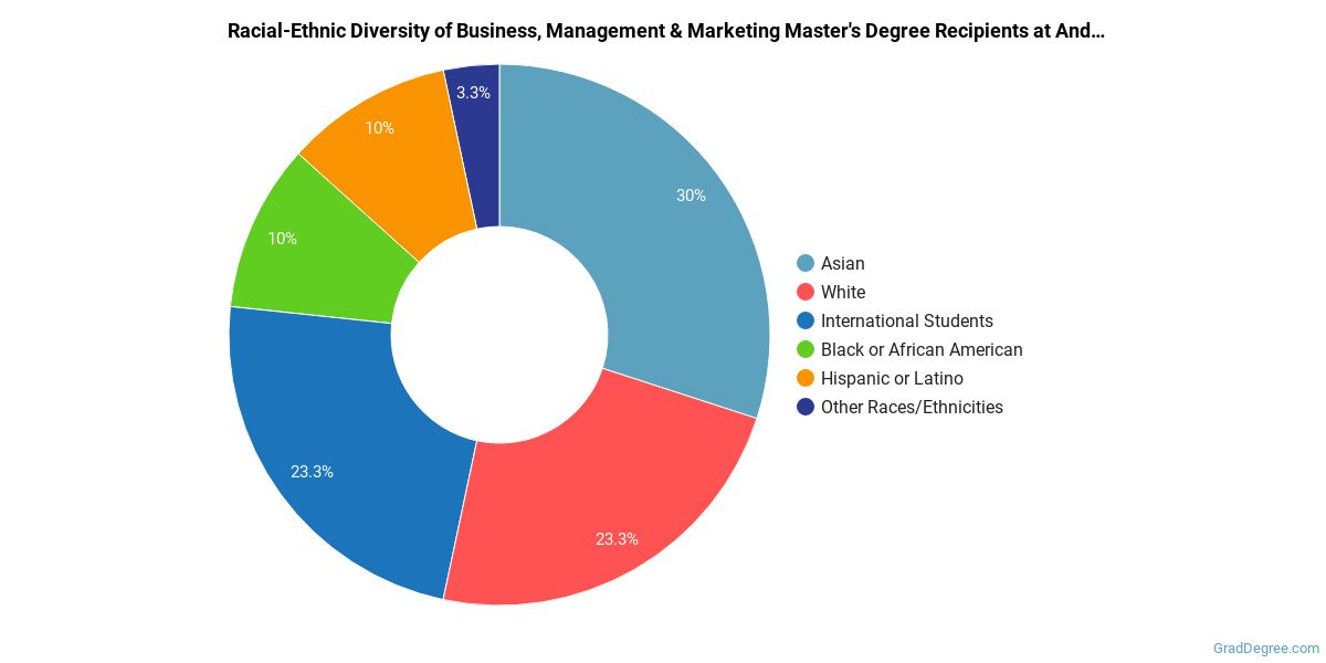 The following table and chart show the race/ethnicity for students who recently graduated from Andrews University with a master's in business, management and marketing.