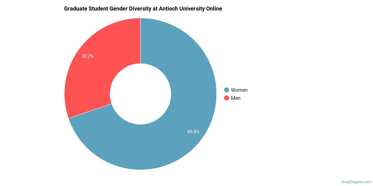 Of the 86 graduate students at Antioch University Online, 30% are male and 70% are female.