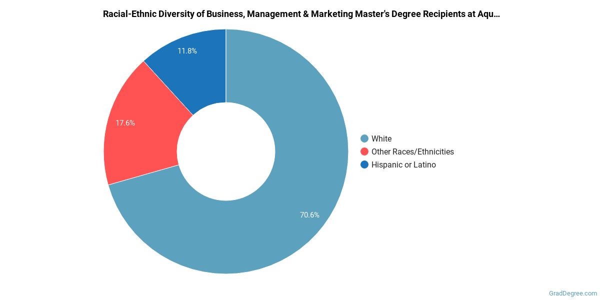 Of the students who received a business, management and marketing master's degree from Aquinas College Michigan, 71% were white. This is above average for this degree on the natiowide level.