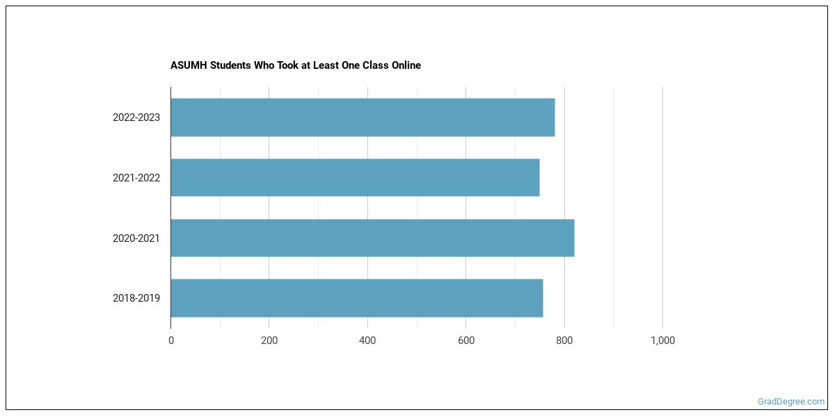 The following chart shows how the online learning population at ASUMH has changed over the last few years.