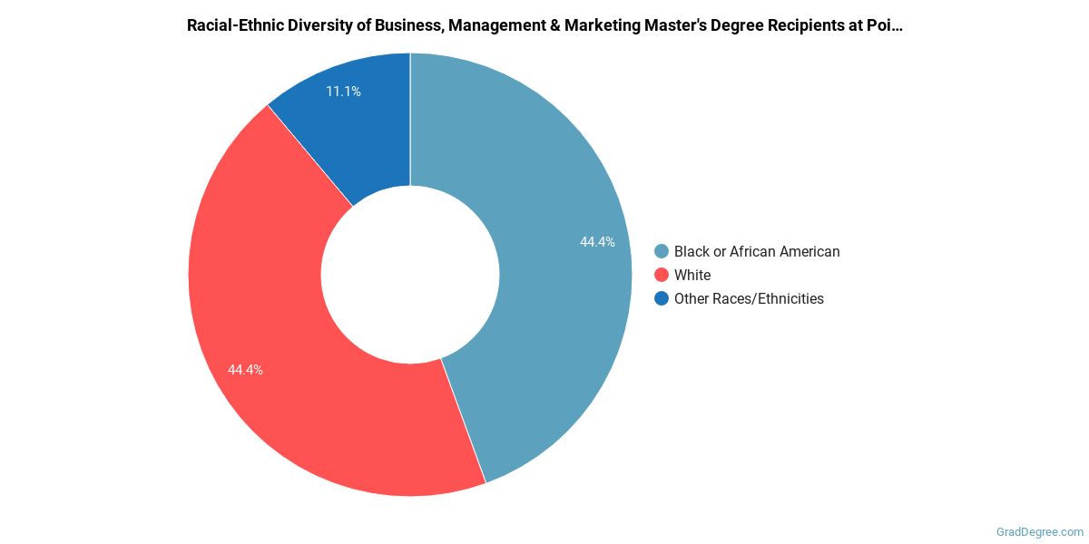The following table and chart show the race/ethnicity for students who recently graduated from Point University with a master's in business, management and marketing.