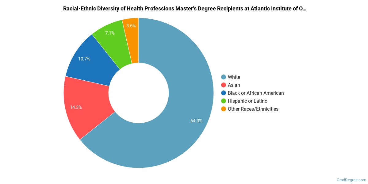 Of the students who received a health professions master's degree from Atlantic Institute of Oriental Medicine, 64% were white. This is above average for this degree on the natiowide level.
