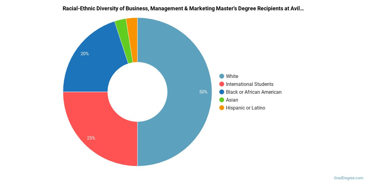 The following table and chart show the race/ethnicity for students who recently graduated from Avila University with a master's in business, management and marketing.
