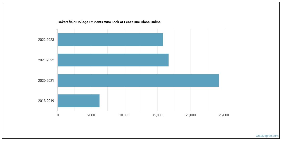 The following chart shows how the online learning population at Bakersfield College has changed over the last few years.