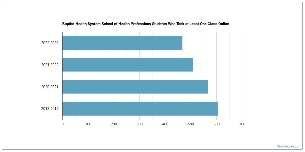 The following chart shows how the online learning population at Baptist Health System School of Health Professions has changed over the last few years.