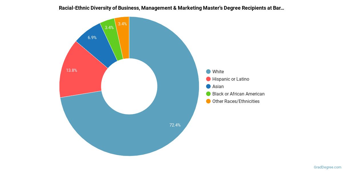 Of the students who received a business, management and marketing master's degree from Bard, 72% were white. This is above average for this degree on the natiowide level.