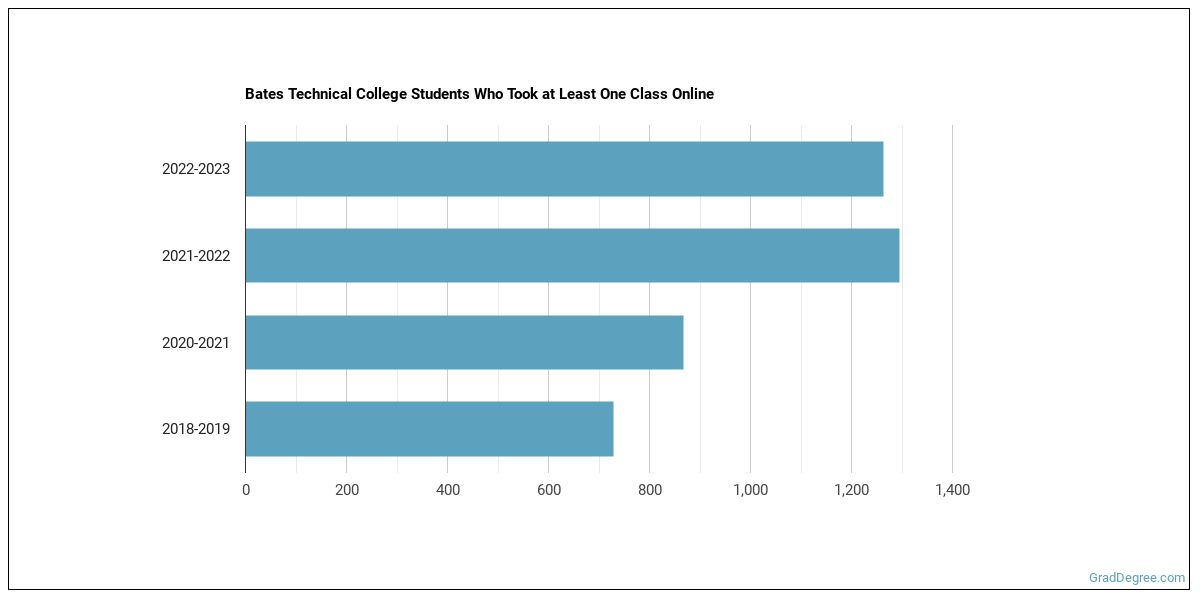 The following table shows the 1-year growth rate of Bates Technical College majors that offer at least one online course. This table only includes majors with positive growth.