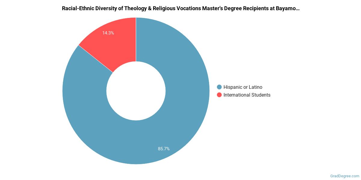 The following table and chart show the race/ethnicity for students who recently graduated from Bayamon Central University with a master's in theology and religious vocations.
