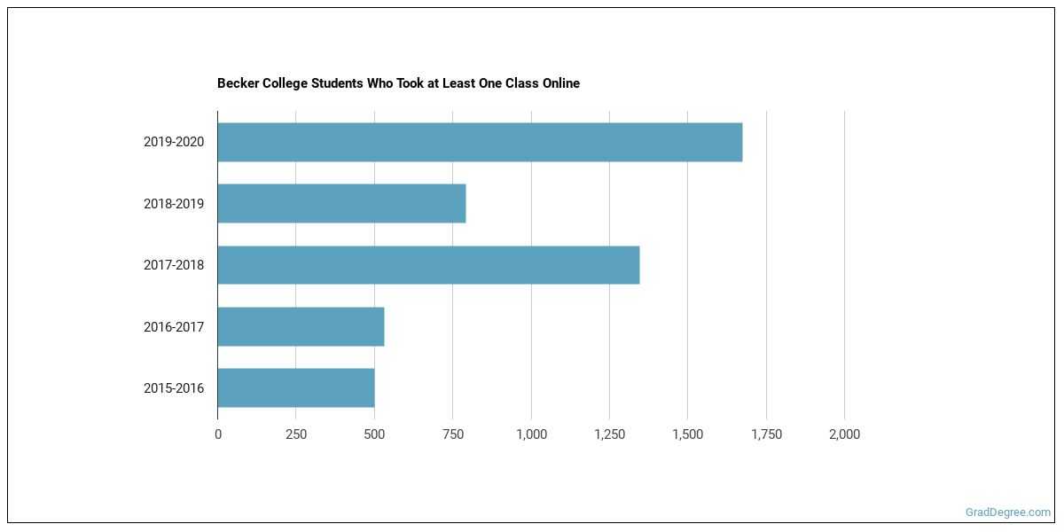 The average growth rate over the last four years of online students at Becker College was 398.4%. This is the #141 largest growth rate of all schools that are mostly online. This refers to all students at Becker College regardless of major.