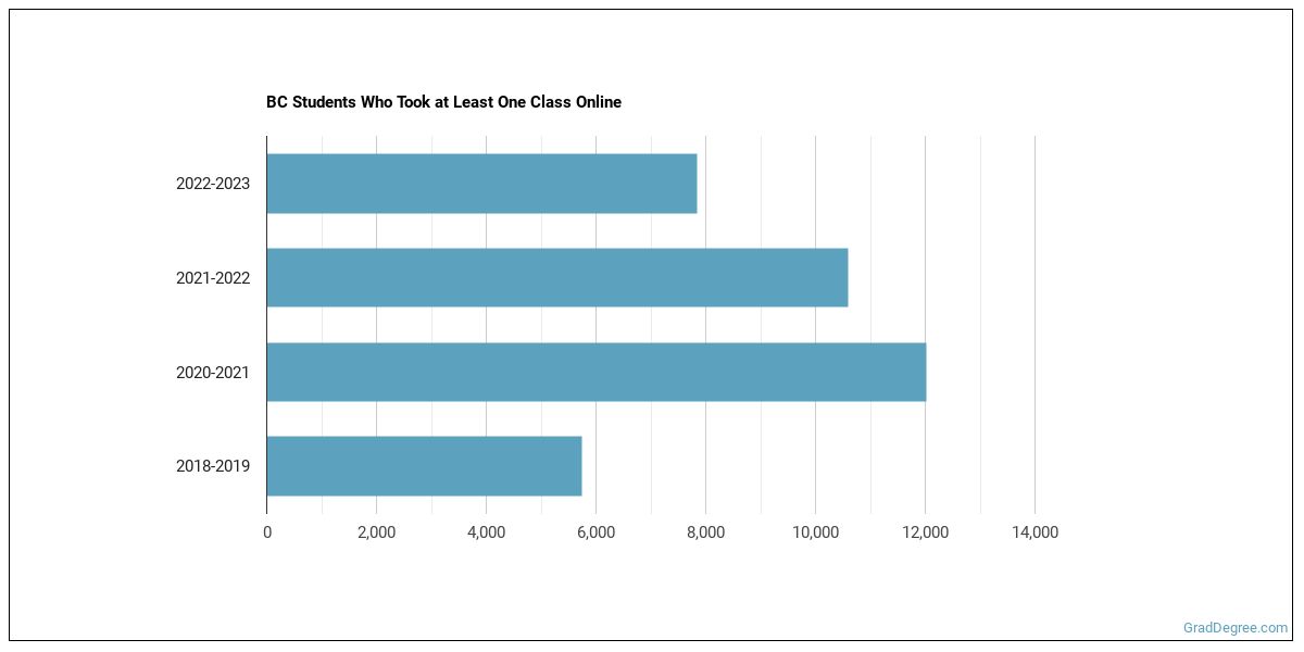 The following chart shows how the online learning population at BC has changed over the last few years.