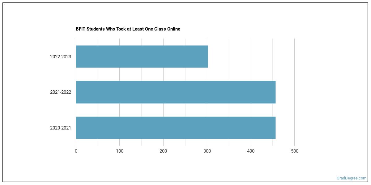 The following chart shows how the online learning population at BFIT has changed over the last few years.