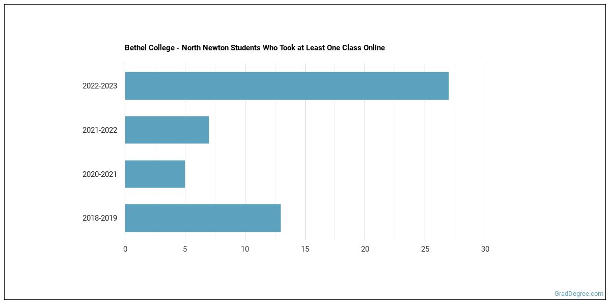 The following chart shows how the online learning population at Bethel College - North Newton has changed over the last few years.