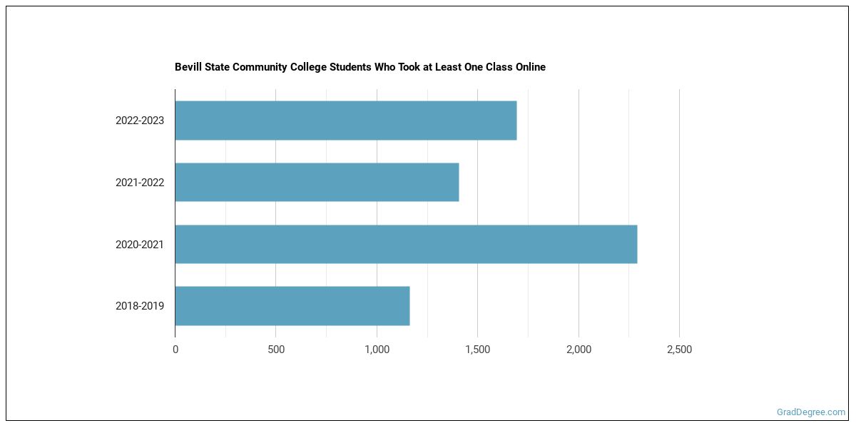 The following chart shows how the online learning population at Bevill State Community College has changed over the last few years.