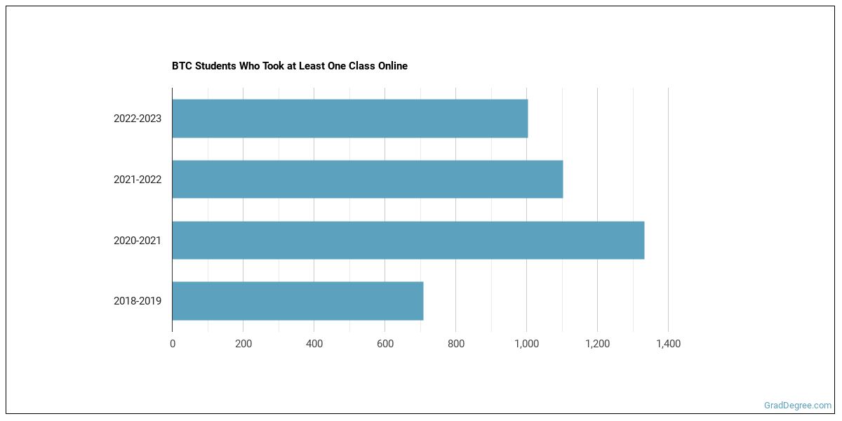 The following chart shows how the online learning population at BTC has changed over the last few years.