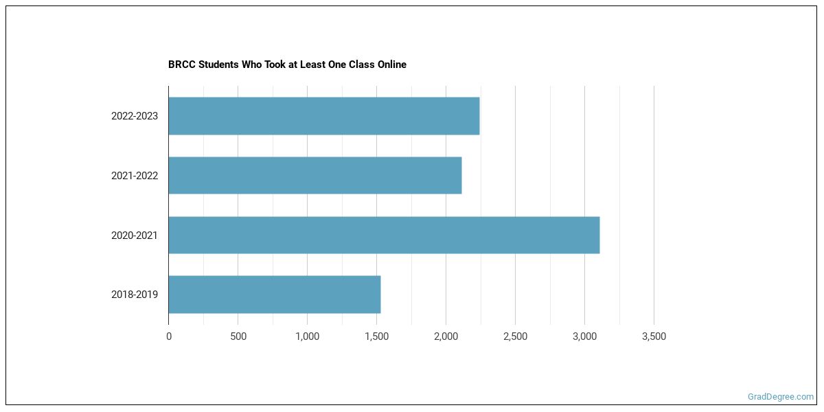 The following chart shows how the online learning population at BRCC has changed over the last few years.