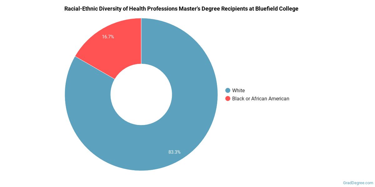 Of the students who received a health professions master's degree from Bluefield College, 83% were white. This is above average for this degree on the natiowide level.