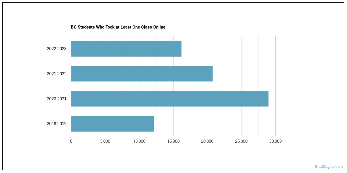 The following chart shows how the online learning population at BC has changed over the last few years.