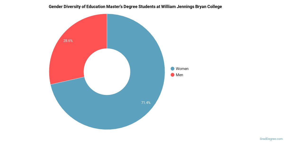 Of the students who received a education master's degree from William Jennings Bryan College, 90% were white. This is above average for this degree on the natiowide level.
