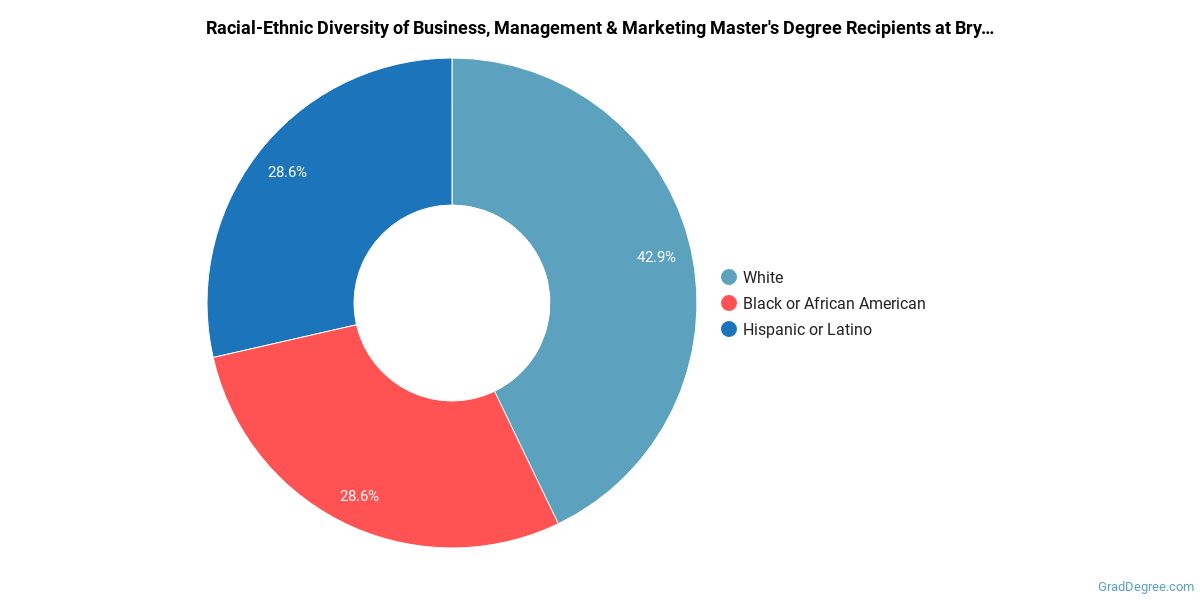 The following table and chart show the race/ethnicity for students who recently graduated from Bryan University with a master's in business, management and marketing.