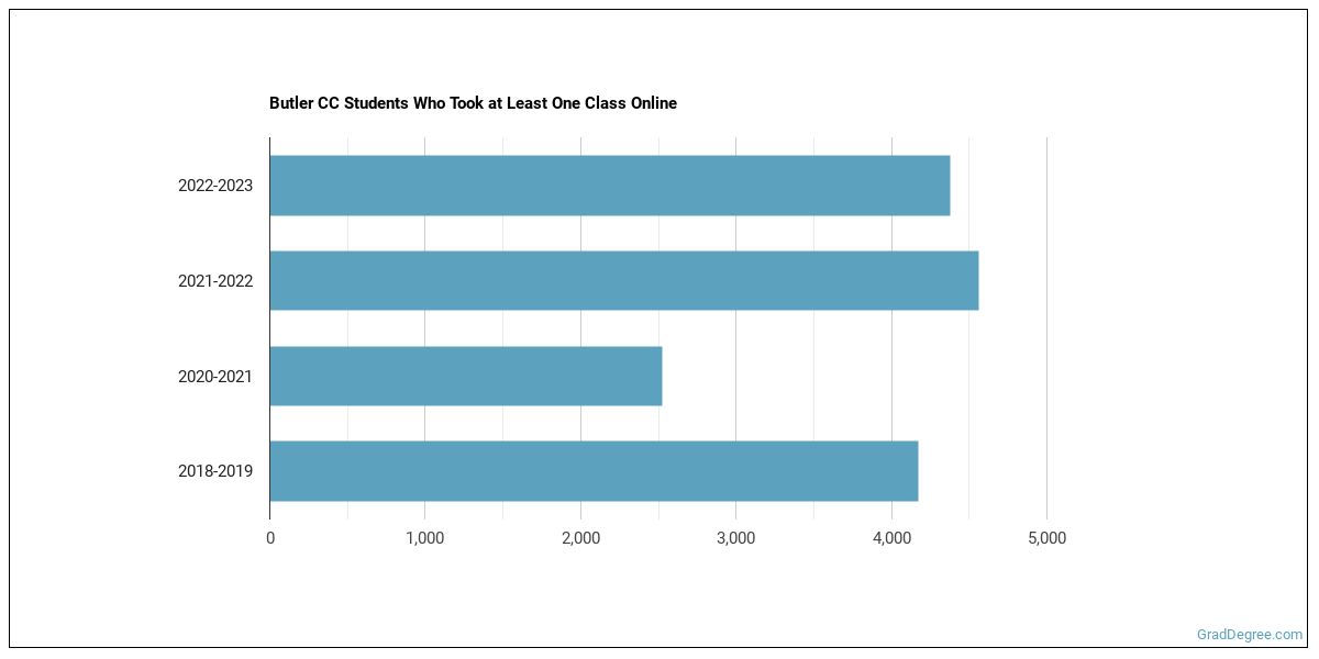 The following chart shows how the online learning population at Butler CC has changed over the last few years.