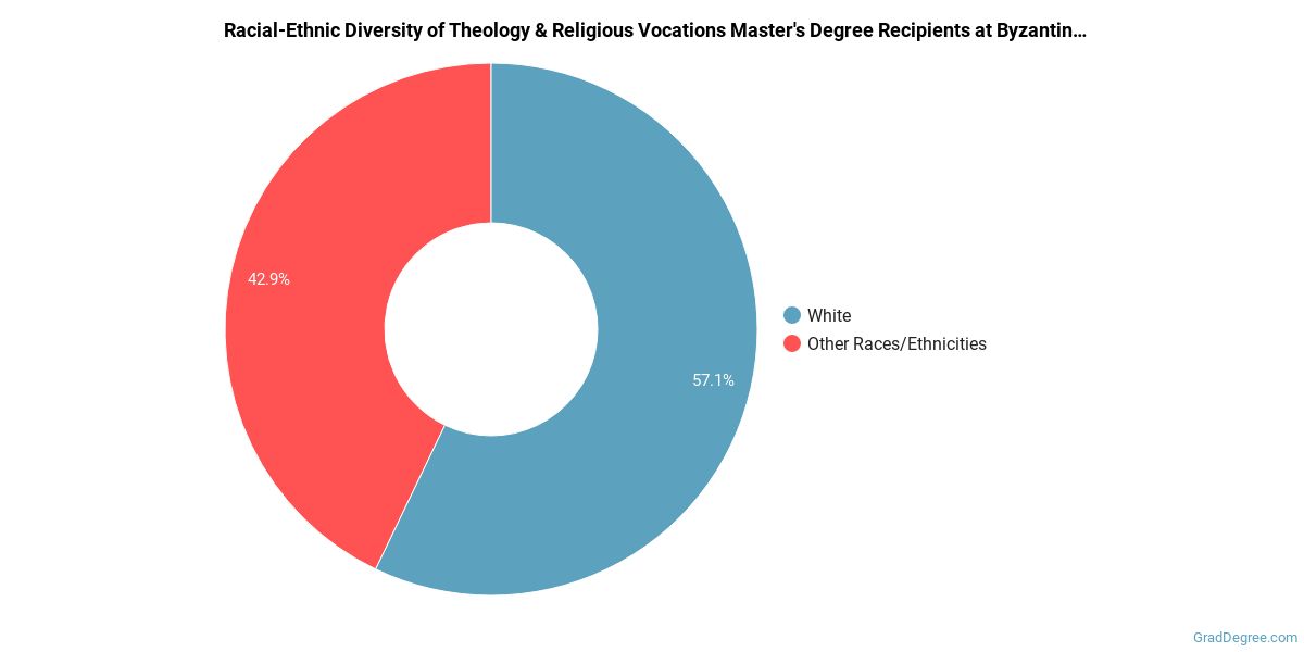 Of the students who received a theology and religious vocations master's degree from Byzantine Catholic Seminary, 57% were white. This is typical for this degree on the natiowide level.