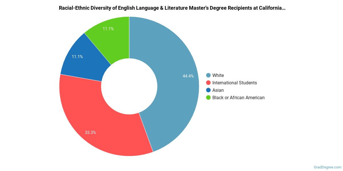 The following table and chart show the race/ethnicity for students who recently graduated from California College of the Arts with a master's in English language and literature.