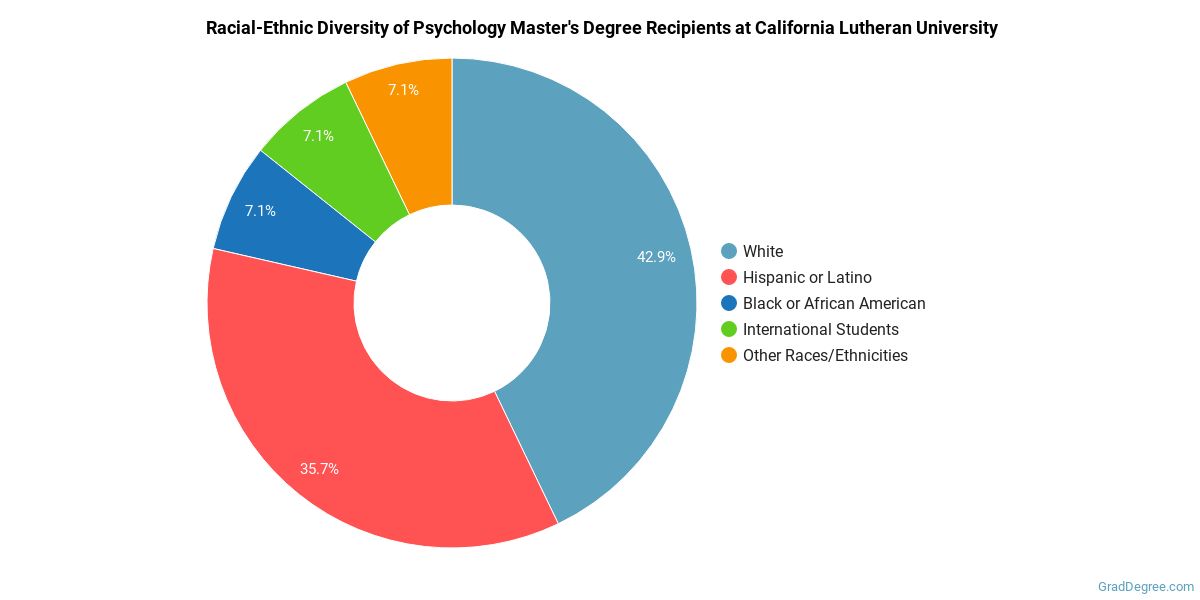 The following table and chart show the race/ethnicity for students who recently graduated from California Lutheran University with a master's in psychology.